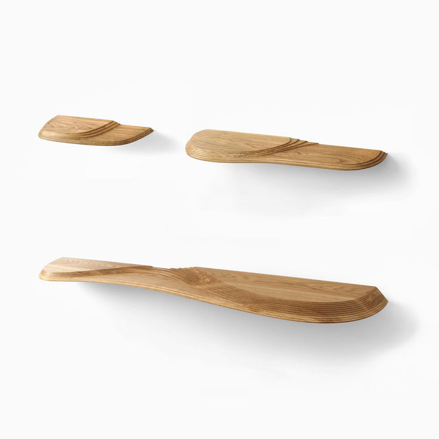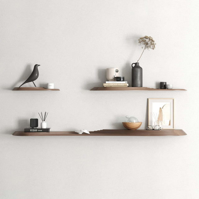 The Terrace Wall Shelves have platforms at different heights, allowing novel ways to display decorations and keepsakes.