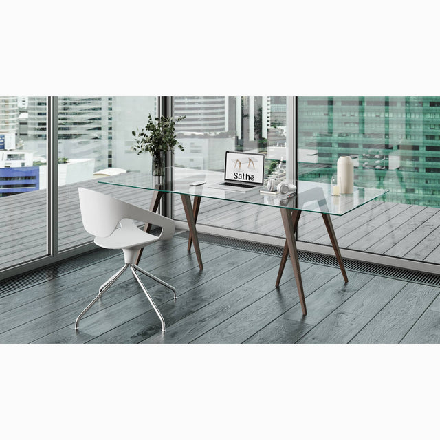 - Conference Tables: Our wooden trestle legs are a custom solution for impressive conference tables. Their robust design supports various tabletops, including a sleek glass top desk.
