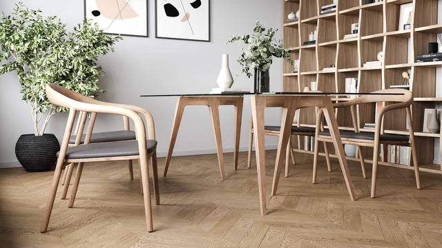 - Trestle Dining Table: Create a stunning wood and glass trestle table that’s the heart of your home. Perfect for dining rooms with modern, Scandinavian, or Japandi interiors.